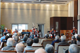 大小さまざまな和太鼓に笛が加わり、会場はお正月らしい華やかな雰囲気に包まれました。居住者の皆様にもご参加いただける体験コーナーでは、体験された方だけでなく、ご覧になっていた方々からも手拍子が湧き、大変楽しい時間を皆様と共有することができました。