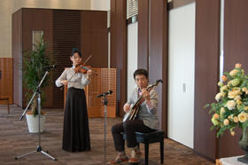 バンジョー奏者の吉崎ひろしさんと、ヴァイオリニストの浅井咲乃さんをお招きし、春咲きコンサートを開催いたしました。