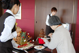 隔月でテーマを決めて開催している昼の茶話会。2月はバレンタインということで、チョコレートファウンテンをご用意しました。