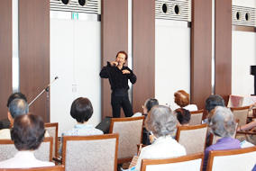 シャンソンやミュージカル曲をパワフルに歌い上げ、その変わらぬ若々しさに皆様元気をもらったようでした。曲間のトークでは若さと健康の秘訣を教えてくださり、 その場で一緒に実践したりと盛り上がりました。