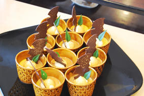 かぼちゃのタルト、かぼちゃプリン、かぼちゃのミルクレープ、かぼちゃチップを添えたパンプキンアイスと、とことんかぼちゃづくし。折角なので、全種類を少量ずつお召し上がりいただきました。