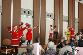 前半は、スタッフによる出し物。こっそり練習に励んだダンスや歌を披露しました。スタッフたちの普段とは違った姿に、皆様手を叩いて喜んでくださいました。
