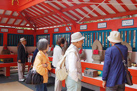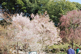 桜が咲いてからは雨が続きましたが、この日は天候にも恵まれ、まずは源平ゆかりの「須磨寺」へ向かいました。886年開基と古い歴史があり、一の谷の合戦で源氏方の熊谷次郎直実に討たれた平敦盛の首塚や義経腰掛松が有名なお寺。丁度見頃を迎えた桜もとても綺麗でした。